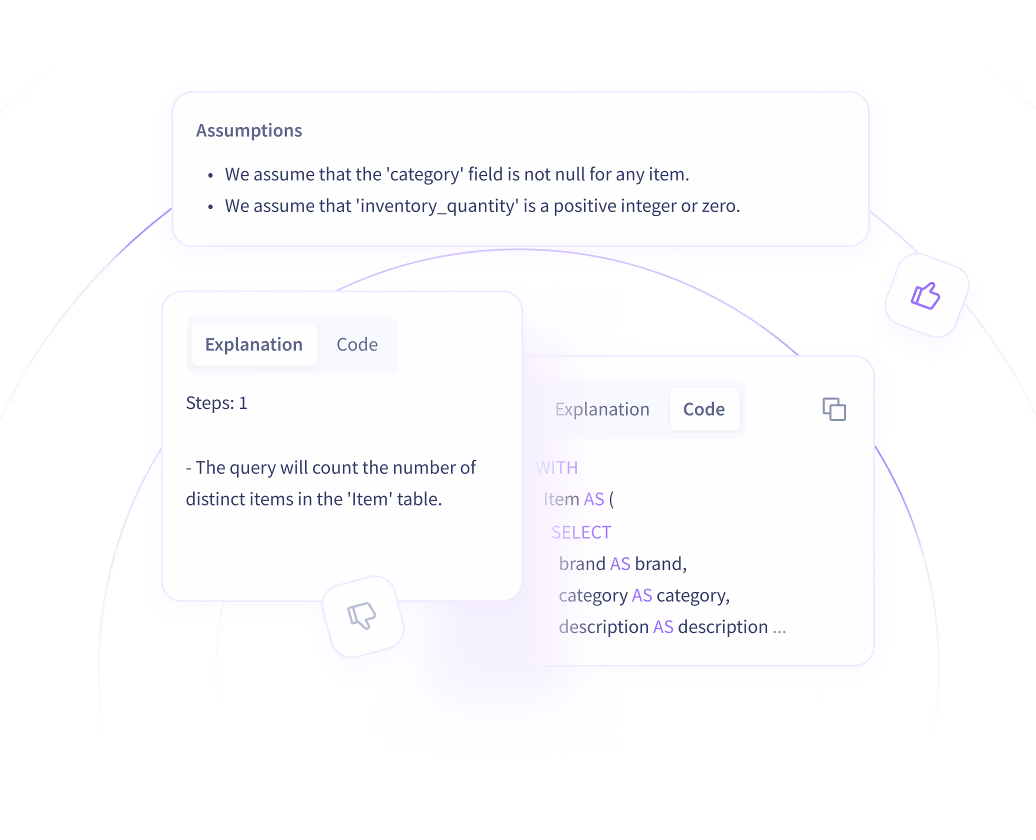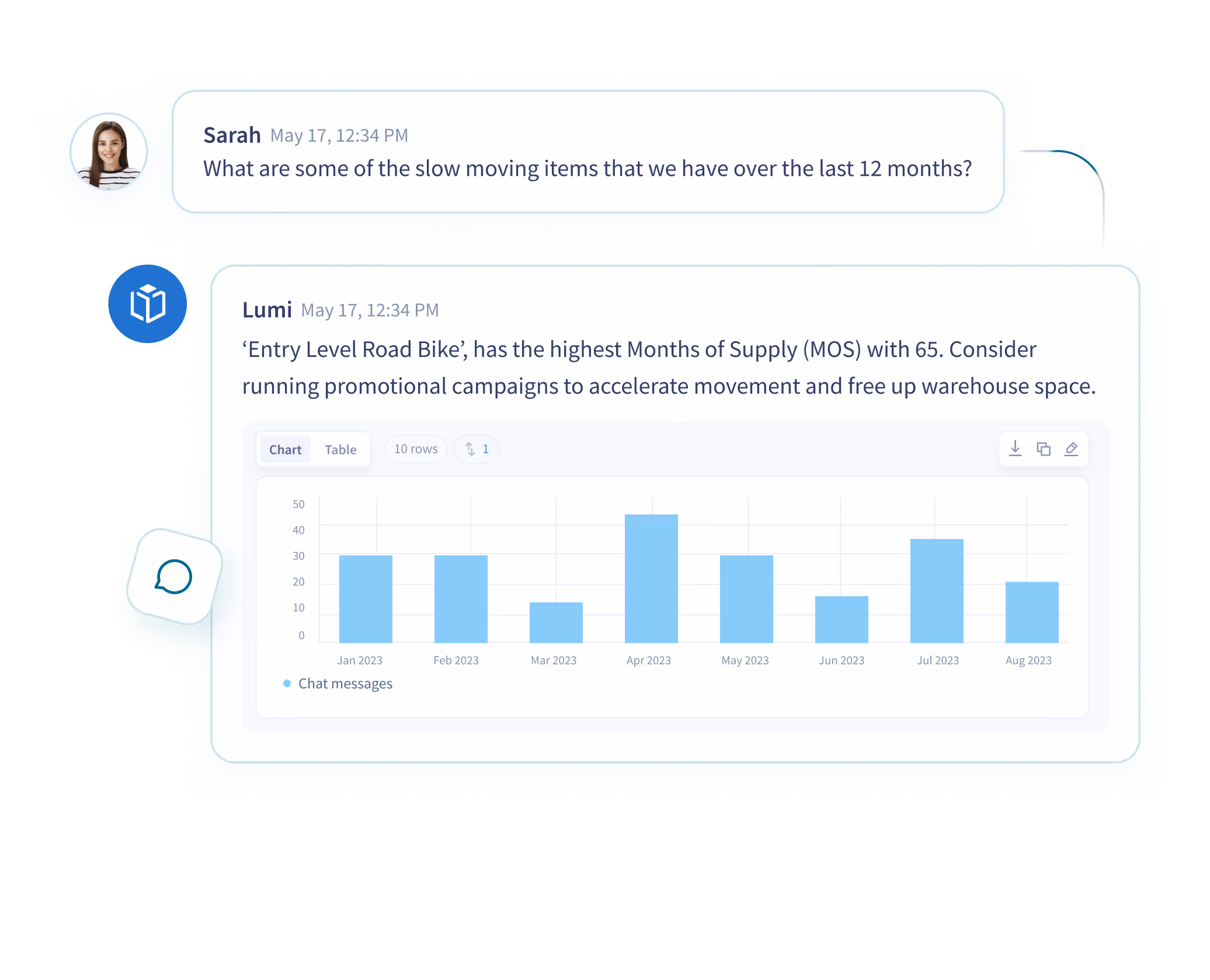 Lumi takes plain-language business questions - even vague ones - and builds complex queries to produce rich responses.
