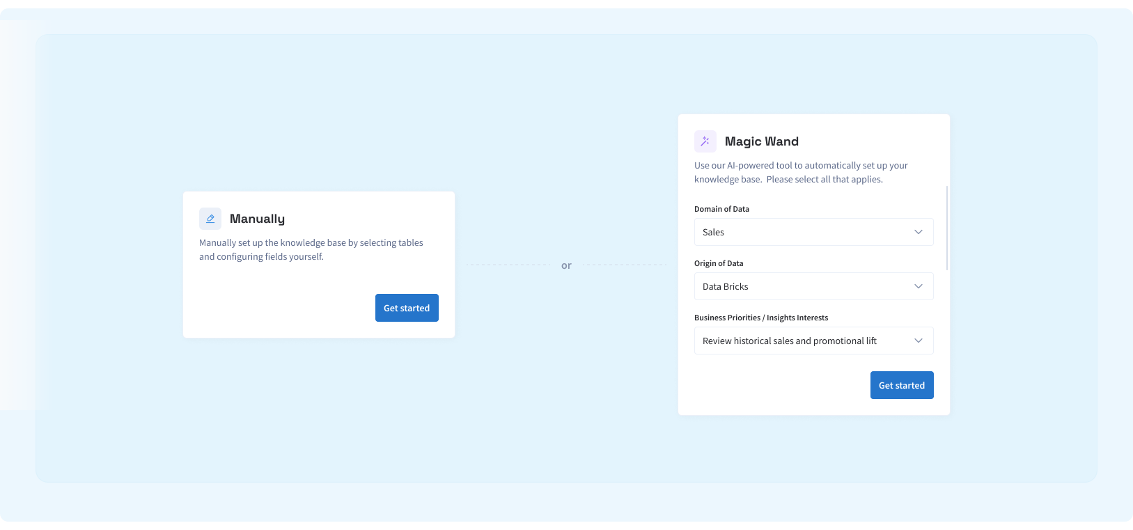At Lumi, we're excited to introduce Magic Wand, an AI-powered setup experience that dramatically streamlines how teams configure their Knowledge Base. Instead of manually selecting tables, mapping fields, and defining context from scratch, Magic Wand uses AI to build your Knowledge Base for you. Provide a few high-level inputs about your data and your goals, and Lumi's agents analyze your connected source system to generate a fully structured Knowledge Base, ready for analysis.