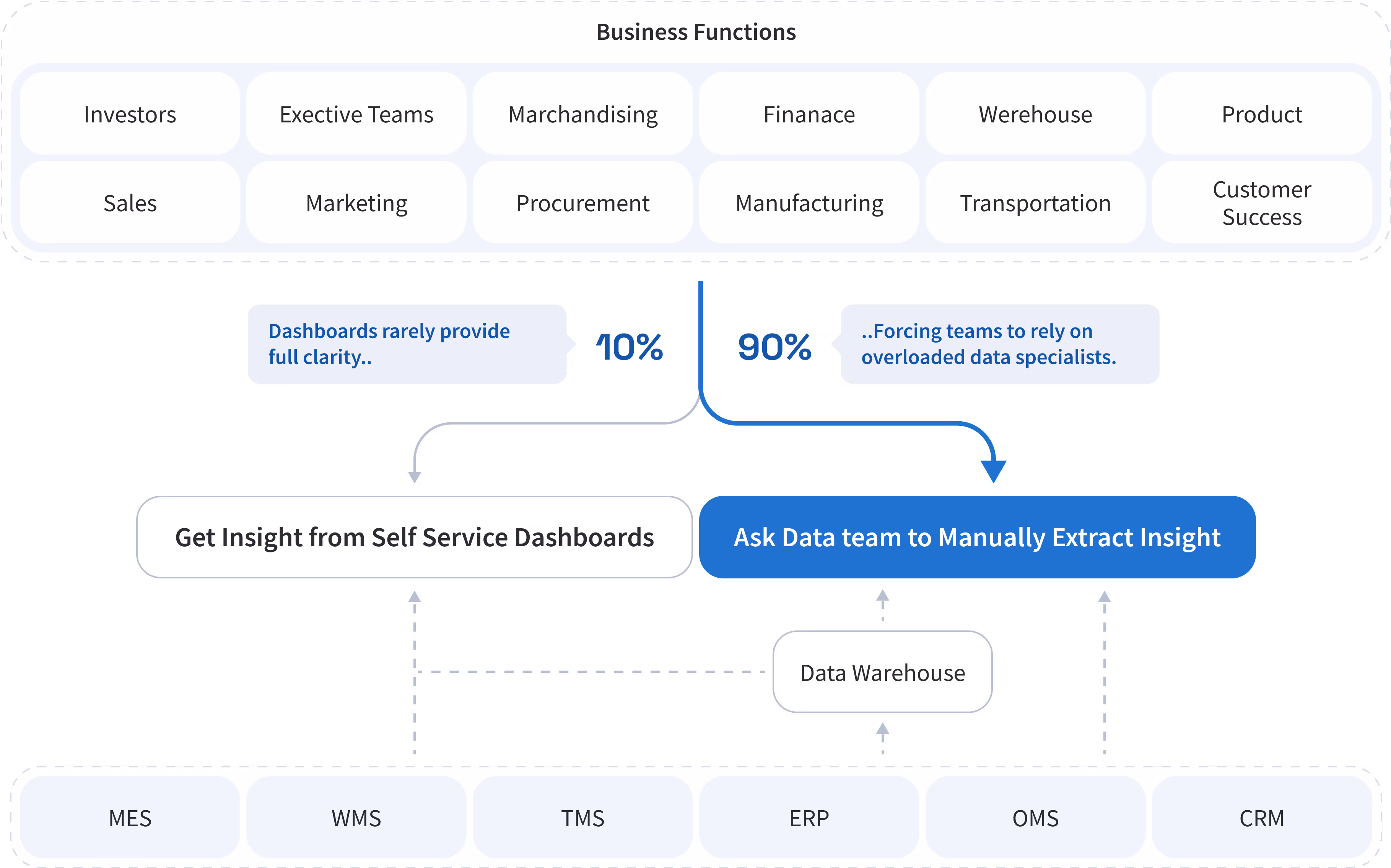Non-technical business users, from high-ranking executives to their respective team members, have found themselves navigating a frustrating paradox. On the one hand, the need for data-driven insights has never been more crucial; on the other hand, the access to these insights has never been more constrained. Overburdened data teams, grappling with the influx of ad-hoc data requests, simply cannot keep up. This results in significant delays, with business users often having to wait for days, or even weeks, for vital insights.